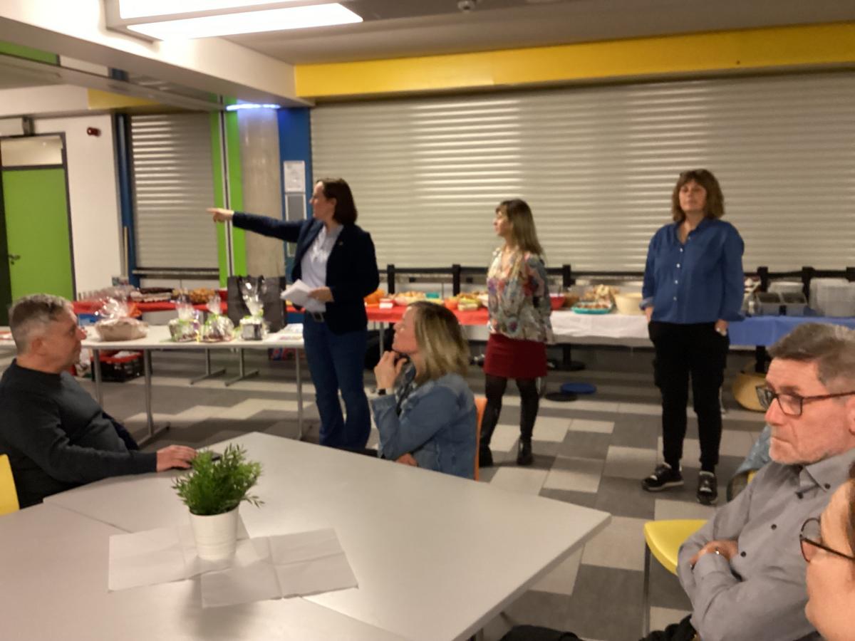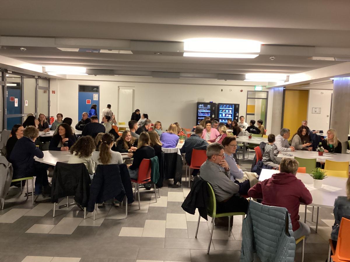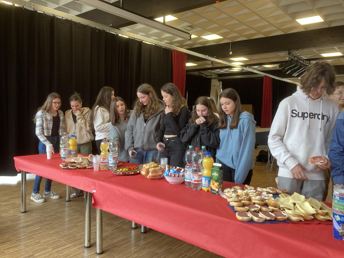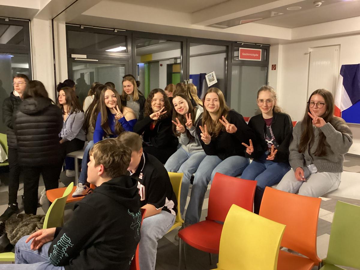 19h. Parents et jeunes se sont retrouvés au self. Présentation des projets, discours et remerciements, un buffet gargantuesque préparé par les familles. Un grand moment fut la participation de tous à un Kahoot sur les jeux olympiques : 20 questions rédigées en bilangue, puis la remise des prix de l'olympiade de la veille ! Après le repas, nous avons dû rejoindre notre bus, non sans peine, la séparation fut difficile pour un grand nombre ! Nos élèves ont hâte de revoir leurs nouveaux amis l'an prochain et ont exprimé leur envie forte de progresser en allemand.