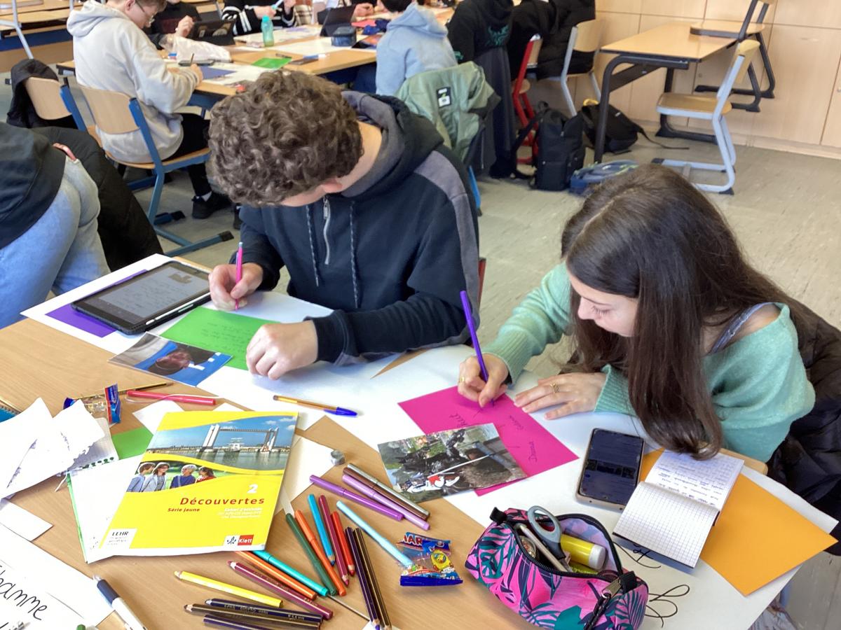 "Après un week-end formidable passé en famille, nous avons retrouvé nos élèves ce lundi. Ils ont assisté aux cours toute la matinée, mangé à la cantine, rendu visite à Monsieur Weber, maire de Meschede et ont fait un jeu de piste en groupes de binômes franco-allemands. Une journée bien remplie !"