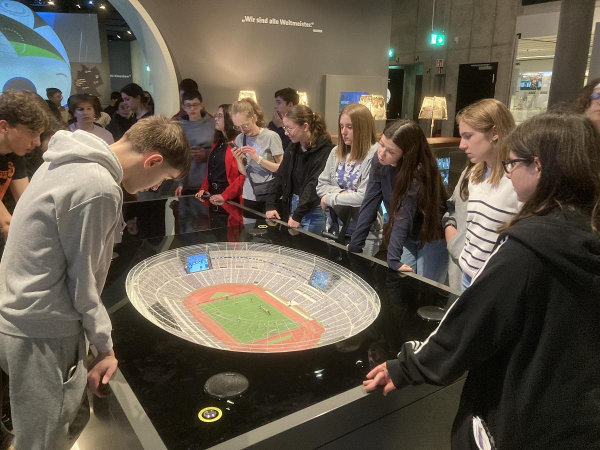 "Mardi : journée à Dortmund. Après un moment de belle convivialité au Superfly, un parc de trampolines, les jeunes ont fait un peu de shopping dans la zone piétonne avant de se rendre au musée du football ! Ce lieu présente les grands moments de l’équipe allemande, mais aussi des événements internationaux ! Les coupes du monde remportées par l’Allemagne se trouvent dans ce musée."