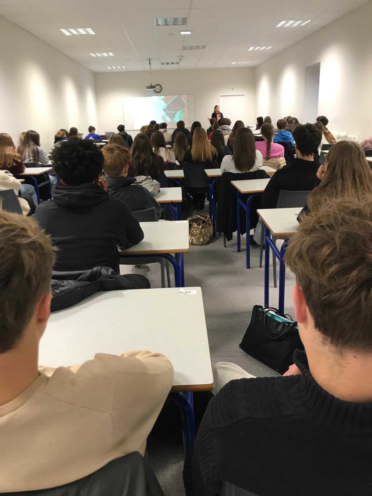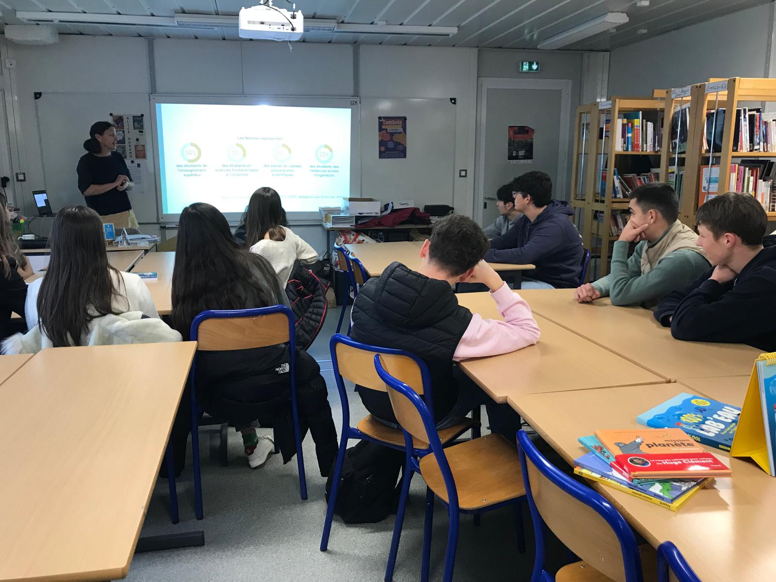 Afin d’informer et de présenter aux élèves les parcours professionnels qui s’offrent à eux dans le domaine des sciences, Alice est intervenue auprès des élèves de 2de, de 1ère générale et technologique (STi2d), des élèves de terminale ayant choisi une spécialité scientifique mais aussi des collégiens de 3ème.