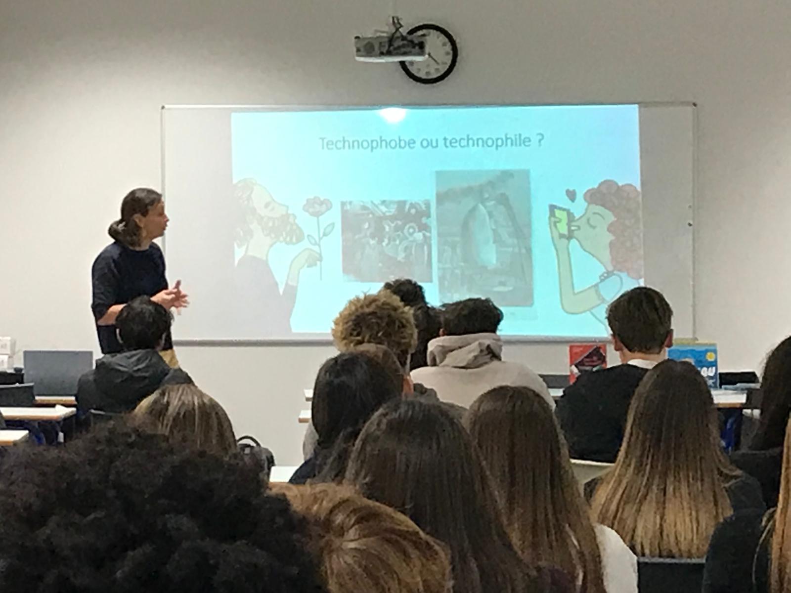 Alice a également abordé la thématique de l'impact des nouvelles technologies sur l'environnement avec les lycéens de 1ère générale, thème dont traite un de ses livres et au programme en classe de 1ère.