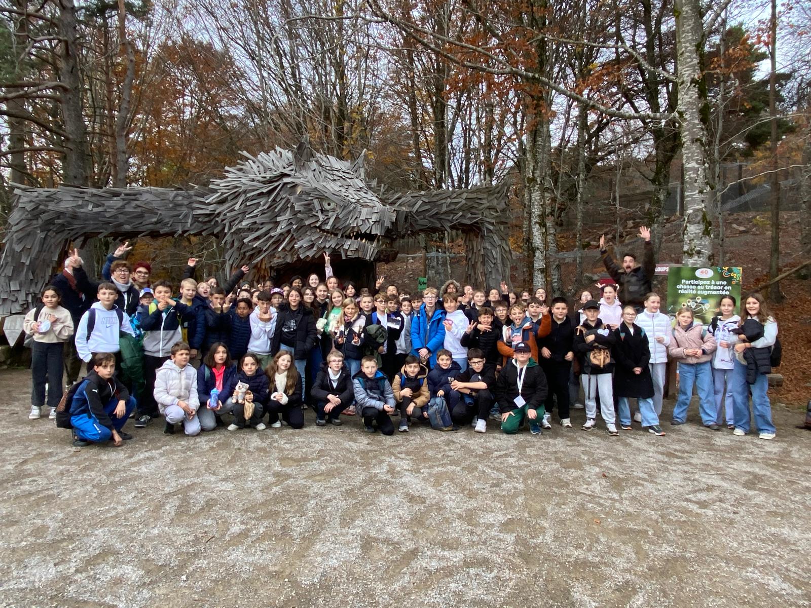 Après avoir travaillé quelques semaines sur les histoires et légendes sur le loup en Français et croqué son portrait en Arts-Plastiques, le temps était venu pour les 6è d’aller sur le terrain pour se jeter dans sa gueule !
